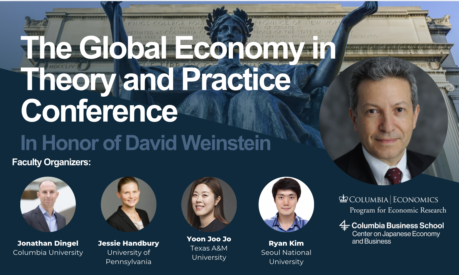 The Program for Economic Research (PER) and the Center on Japanese Economy and Business (CJEB) at Columbia University are pleased to present The Global Economy in Theory and Practice: In Honor of David Weinstein to celebrate Professor David E. Weinstein’s contribution to the field of Economics.